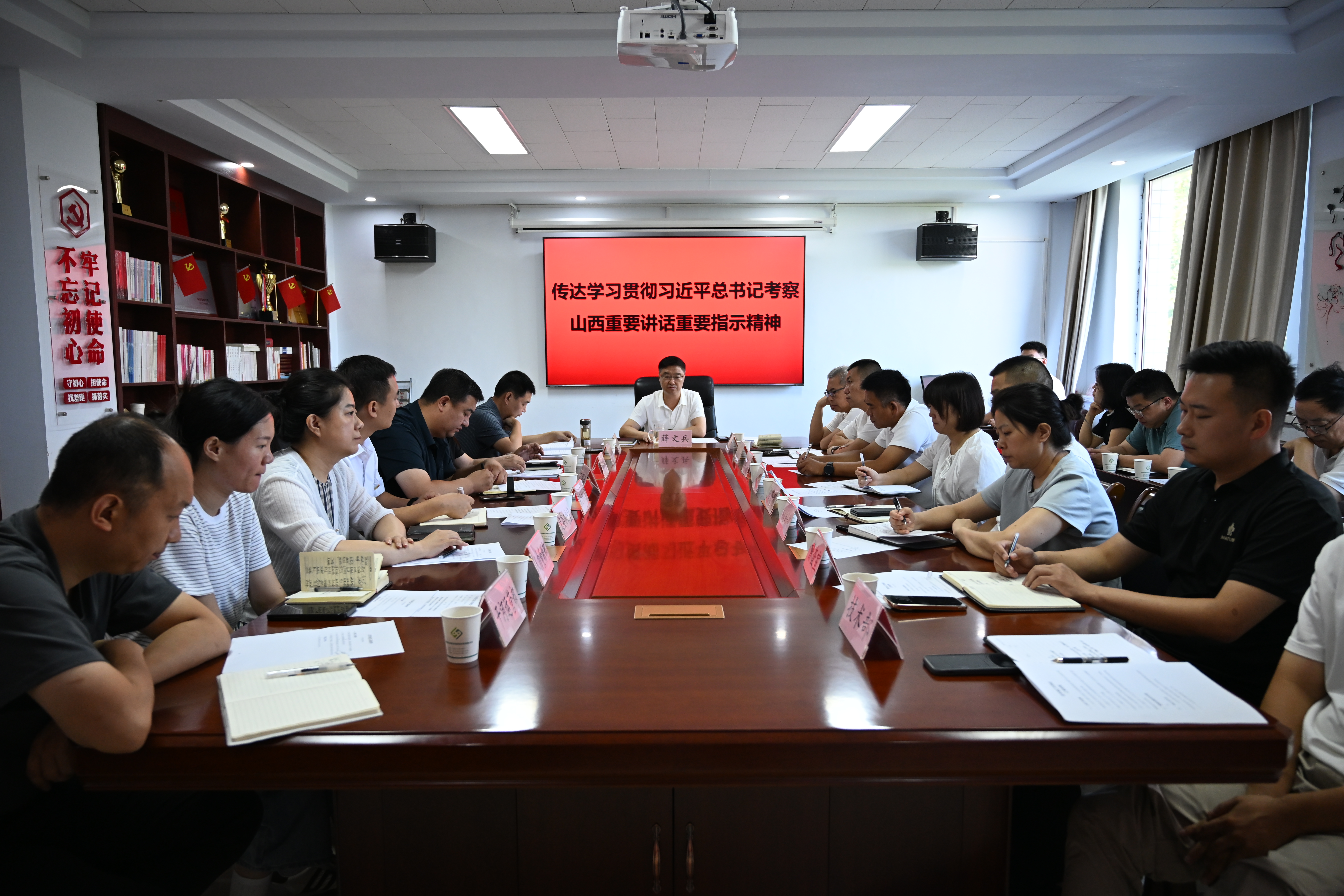 會(huì)議指出,黨的十八大以來(lái),習(xí)近平總書(shū)記先后五次親臨山西考察,對(duì)山西的工作作出重要講話(huà)重要指示,充分體現(xiàn)了對(duì)山西人民的深切牽掛和對(duì)山西發(fā)展的關(guān)心關(guān)懷。習(xí)近平總書(shū)記的重要講話(huà)重要指示高屋建瓴、內(nèi)涵豐富,為我們做好各項(xiàng)工作進(jìn)一步指明了前進(jìn)方向、提供了根本遵循。公司上下要把學(xué)習(xí)好、宣傳好、貫徹好習(xí)近平總書(shū)記重要講話(huà)重要指示精神,作為當(dāng)前和今后一個(gè)時(shí)期的首要政治任務(wù),與貫徹落實(shí)習(xí)近平總書(shū)記歷次考察調(diào)研山西重要講話(huà)重要指示精神結(jié)合起來(lái),與全力以赴做好當(dāng)前工作結(jié)合起來(lái),按照省委、市委部署要求,迅速組織掀起學(xué)習(xí)宣傳貫徹?zé)岢?。要?jiān)持不懈用習(xí)近平新時(shí)代中國(guó)特色社會(huì)主義思想凝心鑄魂,以高質(zhì)量發(fā)展實(shí)際成效堅(jiān)定擁護(hù)“兩個(gè)確立”、堅(jiān)決做到“兩個(gè)維護(hù)”。
