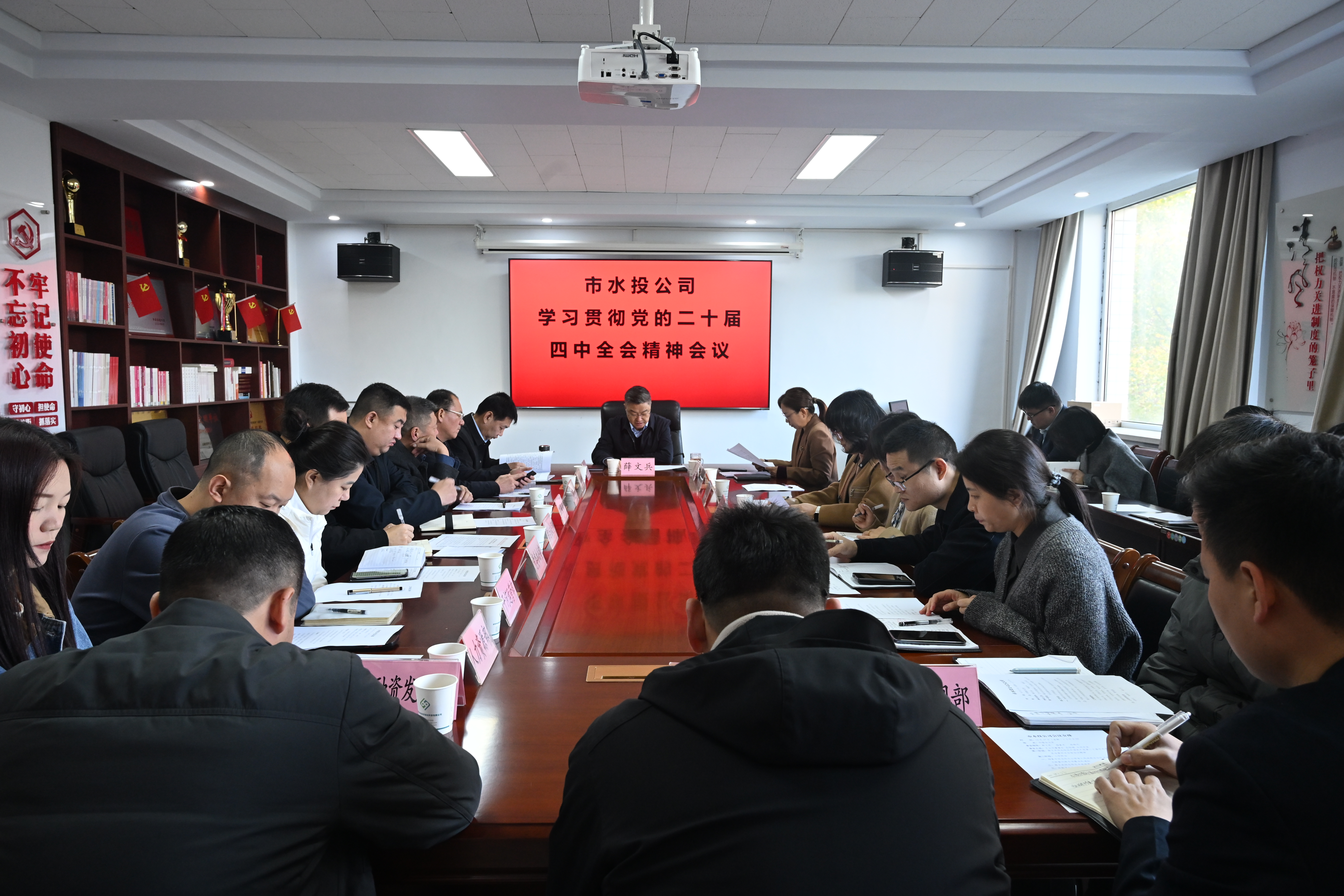 10月27日上午,董事長薛文兵主持召開學(xué)習(xí)貫徹黨的二十屆四中全會精神會議,專題學(xué)習(xí)黨的四中全會精神,結(jié)合公司經(jīng)營發(fā)展實際部署落實舉措??偨?jīng)理楊素平、紀委書記尚曉文,公司中層、各子公司負責(zé)人參加。