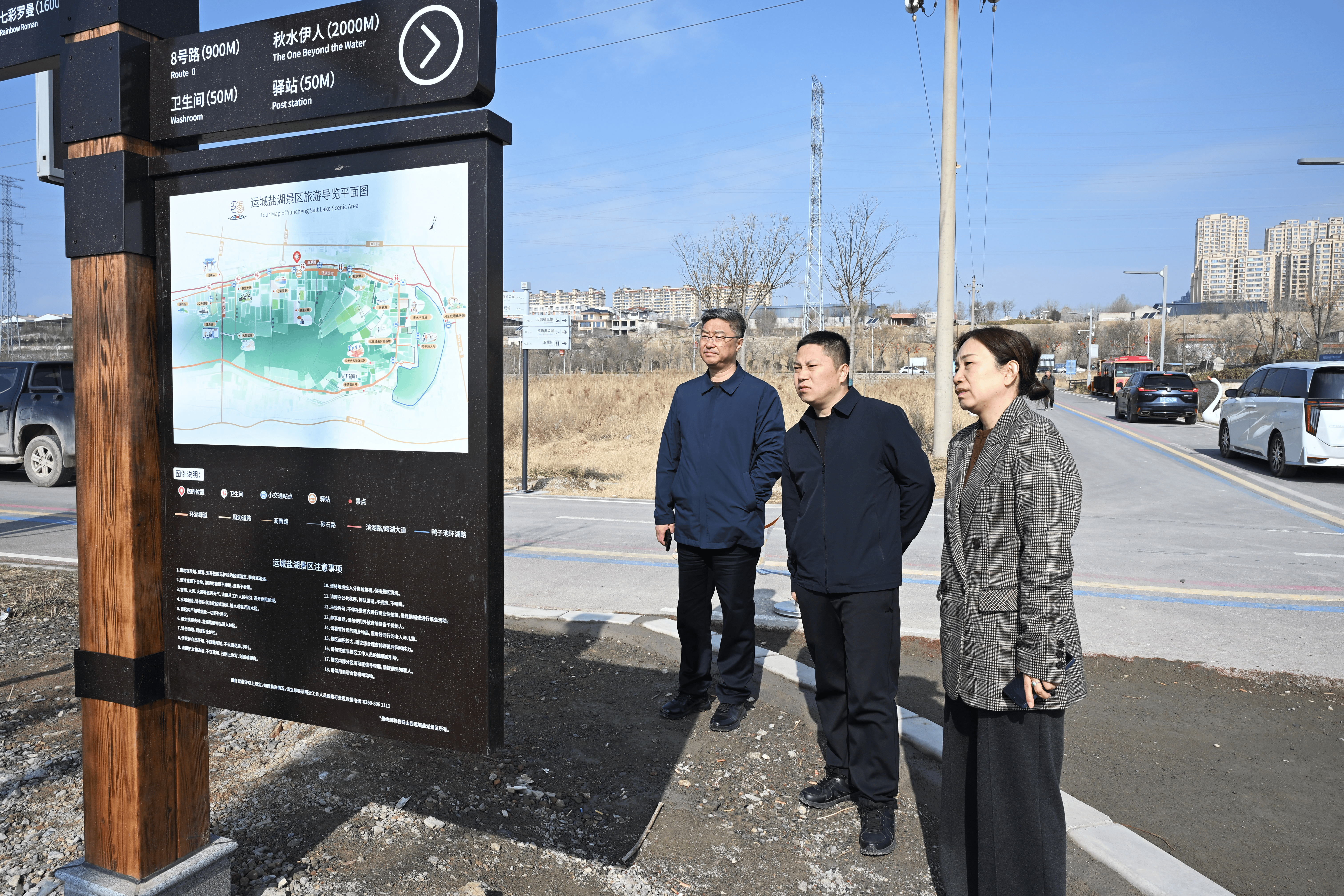 隨后,薛文兵實(shí)地查看五步制鹽體驗(yàn)區(qū)施工現(xiàn)場(chǎng)以及鹽湖景點(diǎn)導(dǎo)視牌設(shè)置情況。他強(qiáng)調(diào),五步制鹽體驗(yàn)區(qū)已進(jìn)入最后攻堅(jiān)階段,要在抓實(shí)安全保障的前提下,確保項(xiàng)目按時(shí)間節(jié)點(diǎn)順利完工;對(duì)景點(diǎn)導(dǎo)視牌的布局、內(nèi)容及外觀設(shè)計(jì)進(jìn)行優(yōu)化,要充分融入鹽池生態(tài)環(huán)境,與自然景觀和諧統(tǒng)一。